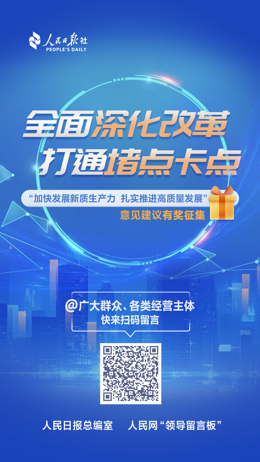 發(fā)展新質(zhì)生產(chǎn)力需掃清哪些障礙?需在哪些方面重點(diǎn)發(fā)力,加大政策支持?哪些產(chǎn)業(yè)要優(yōu)先布局?如何進(jìn)一步全面深化改革,促進(jìn)新質(zhì)生產(chǎn)力發(fā)展?歡迎來(lái)人民網(wǎng)《人民建議》聊聊。