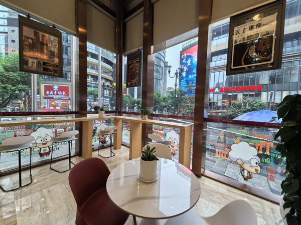 與此同時,該行還著眼于提升客戶的休息體驗,在硬件配置和軟裝設(shè)計上對休息區(qū)進行了精心設(shè)計與改造。以“休息充電”為主題新增的充電設(shè)施、舒適的休息座椅以及豐富的茶歇服務(wù),為客戶提供了極大的便利。此外,休息區(qū)內(nèi)的特色軟裝設(shè)計,如多國語言問候的玻璃貼、趣味雙語讀物展架以及主題景點海報、重慶輕軌地圖、川渝旅游攻略,更是讓境內(nèi)外客戶在享受服務(wù)的同時,感受到銀行的貼心與用心。