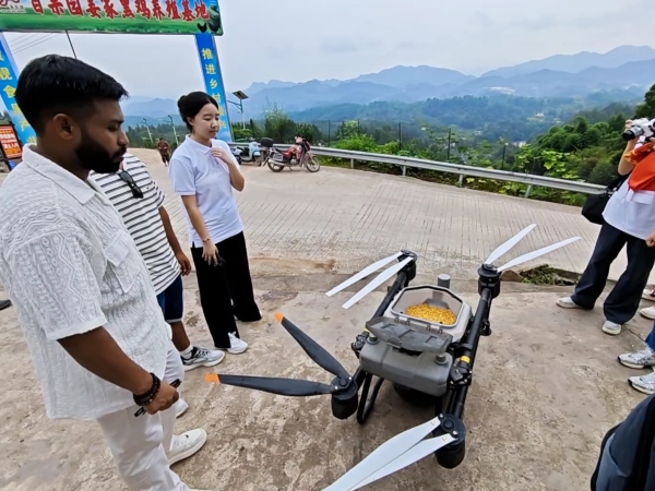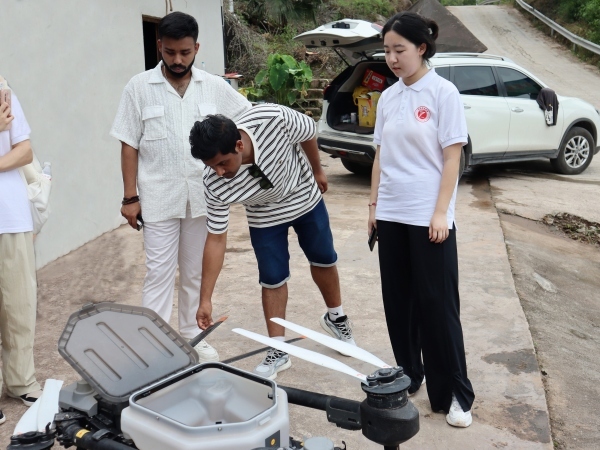 實踐團成員了解無人機喂養(yǎng)技術。李麗珊攝
