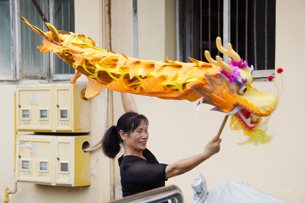 李月華現(xiàn)場表演舞龍。張笑涵攝