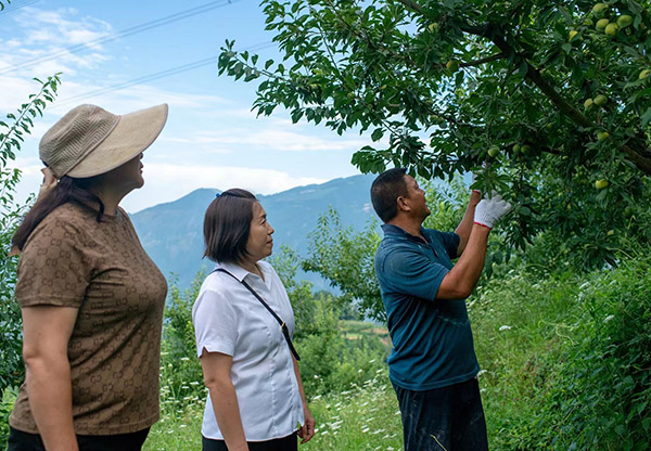 客戶經(jīng)理在脆李基地開展貸后檢查。重慶農(nóng)商行供圖