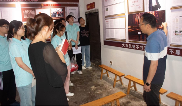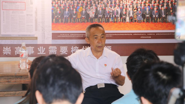 竹賢鄉(xiāng)黨委書記吳文銳為小分隊(duì)一行講解下莊精神。西南大學(xué)供圖