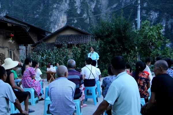 宣講員邱子娟向居民講解“巴渝和美鄉(xiāng)村建設(shè)”。西南大學(xué)供圖