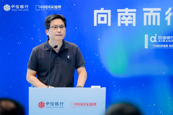 《中國國家地理》雜志社社長兼總編輯李栓科線上致辭。中信銀行重慶分行供圖