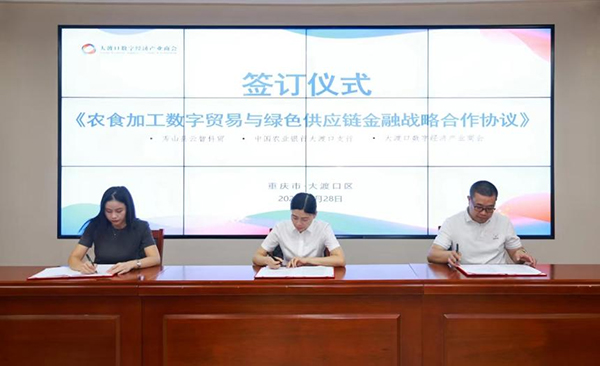 農(nóng)行重慶大渡口支行、大渡口區(qū)數(shù)字經(jīng)濟(jì)產(chǎn)業(yè)商會(huì)、秀山云智科貿(mào)現(xiàn)場(chǎng)簽訂《農(nóng)食加工數(shù)字貿(mào)易與綠色供應(yīng)鏈金融戰(zhàn)略合作協(xié)議》,未來(lái)將為秀山縣茶產(chǎn)業(yè)示范村鐘靈鎮(zhèn)凱堡村與大渡口區(qū)蜂窩壩村之間的產(chǎn)業(yè)合作提供切實(shí)助力。(曾英豪)