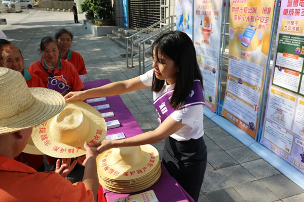 當(dāng)天,重慶轄內(nèi)各金融機(jī)構(gòu)發(fā)揮教育宣傳主體責(zé)任,線上線下全面啟動金融教育宣傳月活動。依托縣域設(shè)立的金融教育示范基地,開展首次集中宣傳,面向三峽庫區(qū)、革命老區(qū)等縣域基層一線開展宣傳活動。結(jié)合重慶豐富的旅游資源,設(shè)置特色金融知識教育宣傳點(diǎn)和打卡點(diǎn),吸引群眾在打卡中獲取金融知識。在近日重慶的高溫天氣下,還通過為客戶送祛暑茶、為環(huán)衛(wèi)工人和村民送印有反詐宣傳語的草帽等方式,送去金融服務(wù)的溫度。