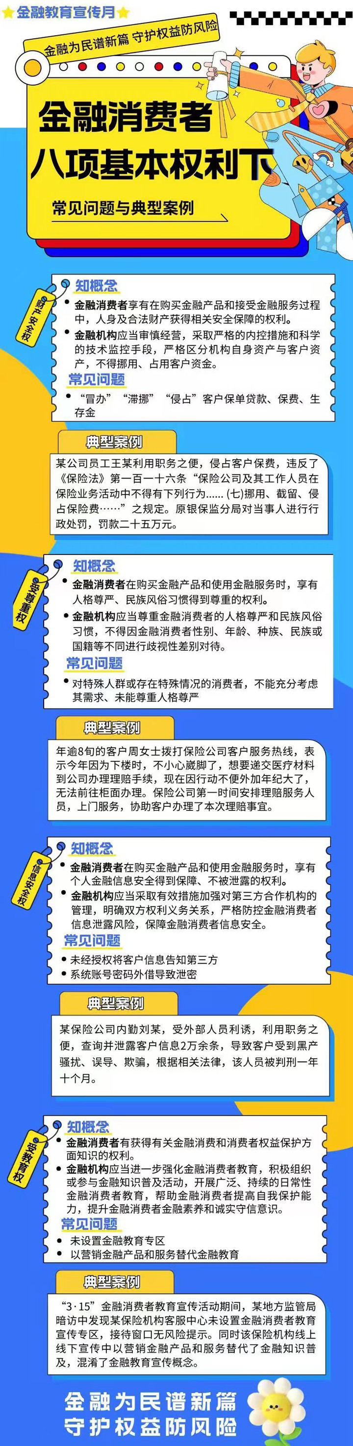 9月1日至9月30日期間,平安人壽重慶分公司積極開展2024年9月“金融教育宣傳月”活動,通過案例、漫畫、長圖等形式,幫助公眾了解金融知識,認(rèn)識金融風(fēng)險,切實保護金融消費者合法權(quán)益。本期主題為《了解金融消費者八項基本權(quán)利(下)》,一起來看看!(平安人壽重慶分公司供圖)