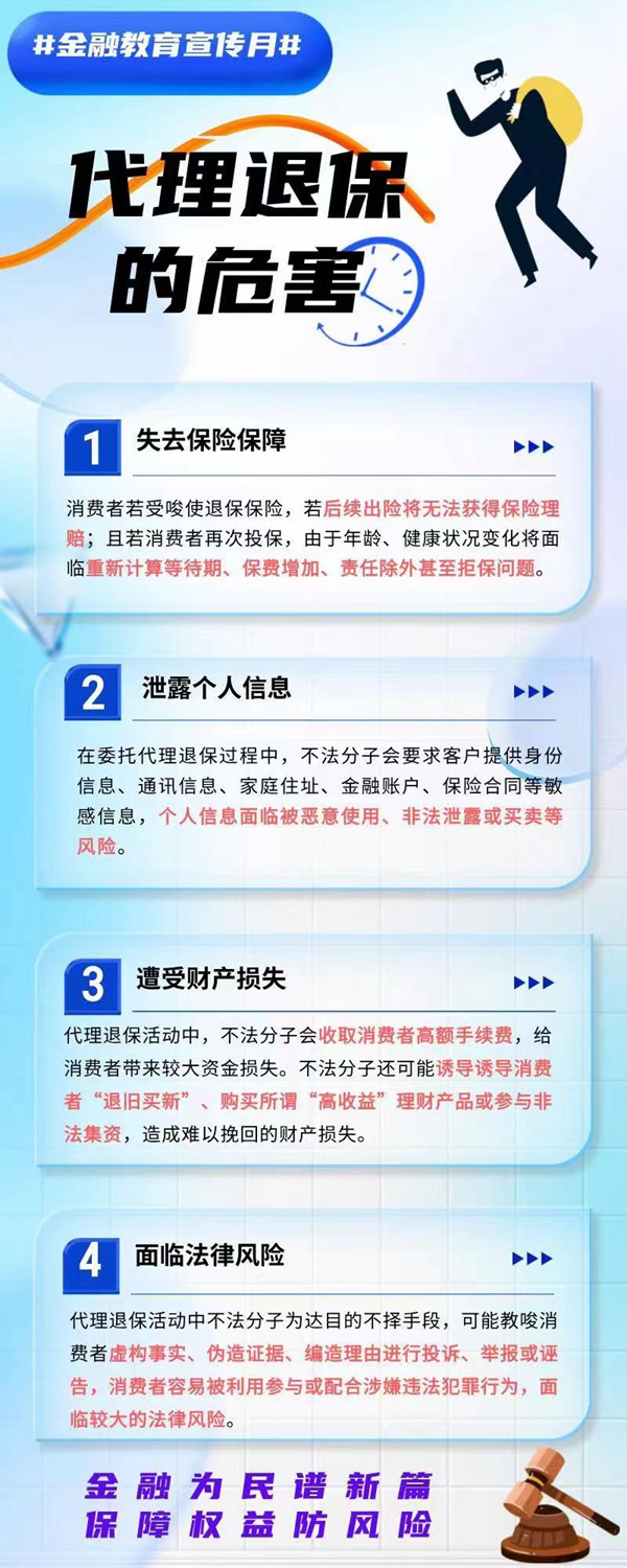 9月1日至9月30日期間,平安人壽重慶分公司積極開展2024年9月“金融教育宣傳月”活動,通過案例、漫畫、長圖等形式,幫助公眾了解金融知識,認(rèn)識金融風(fēng)險,切實保護金融消費者合法權(quán)益。本期主題為《一圖了解“代理退?!钡奈:Α?,一起來看看?。ㄆ桨踩藟壑貞c分公司供圖)