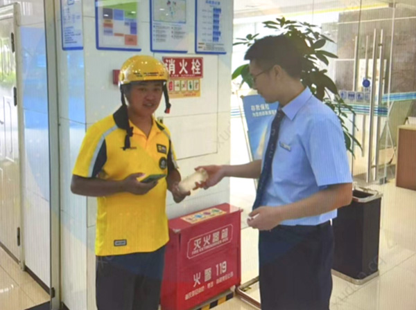 為外賣(mài)員送上飲用水。建行重慶市分行供圖