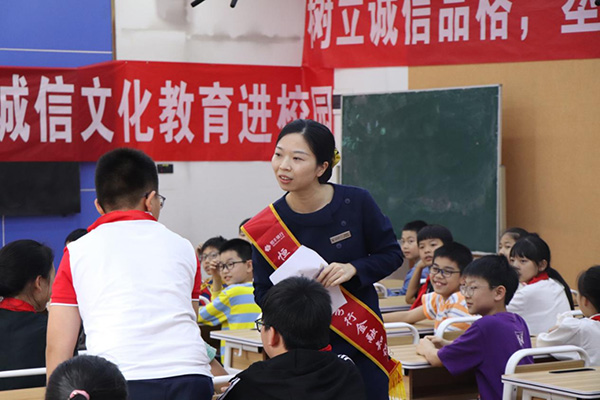 活動(dòng)期間,轄內(nèi)萬州支行走進(jìn)萬州區(qū)雞公嶺小學(xué)開展“誠信文化教育進(jìn)校園”活動(dòng),結(jié)合“一諾千金”和“狼來了”誠信故事,從孩子們的視角講述誠信的重要性,引申普及個(gè)人征信知識(shí),為孩子們帶來一堂別有趣味的金融知識(shí)啟蒙課。