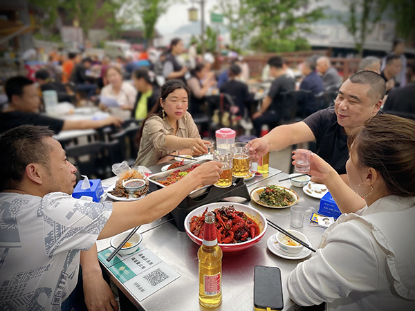 在重慶萬州渝尾巴烤魚用餐的食客。建行重慶市分行供圖