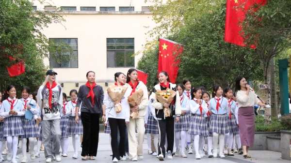 運(yùn)動(dòng)員們走進(jìn)武隆鳳溪小學(xué)校園。武隆鳳溪小學(xué)供圖