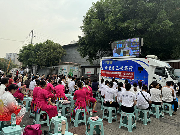 流動(dòng)銀行車開進(jìn)社區(qū),傳遞金融知識(shí)。重慶三峽銀行供圖