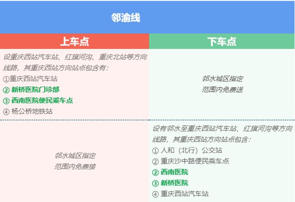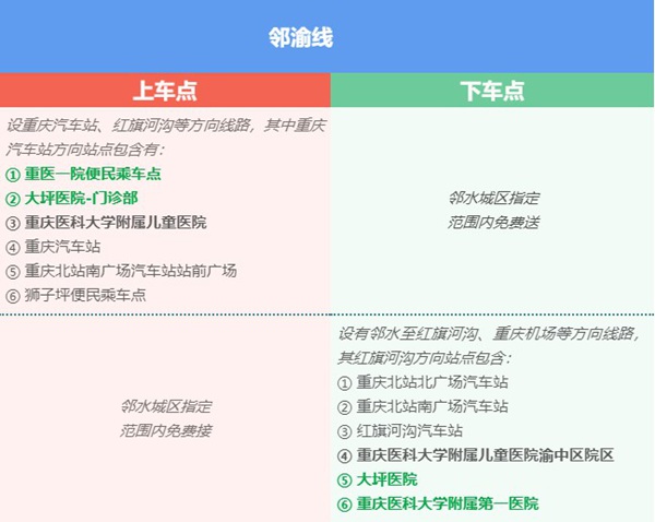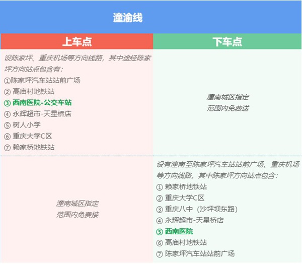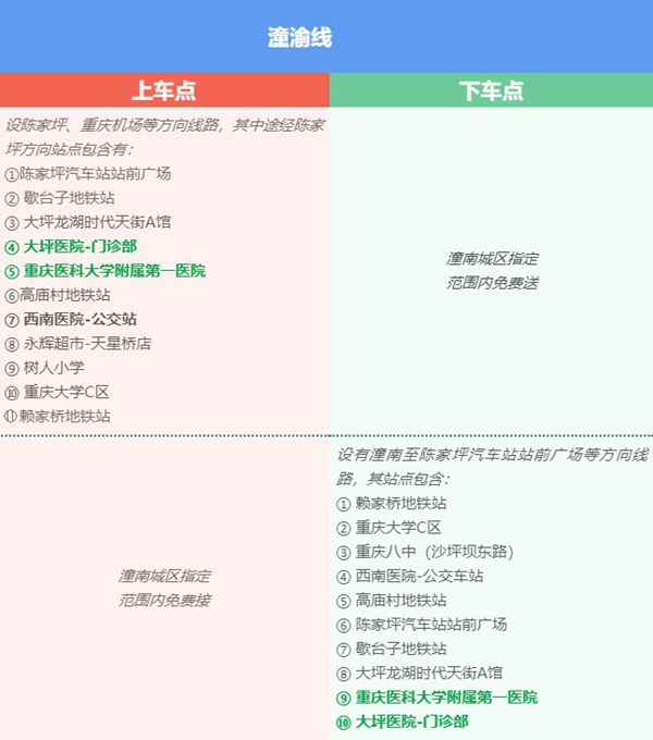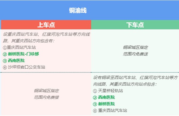 10月24日,愉客行發(fā)布了途經(jīng)醫(yī)院的班車線路,方便市民出行就醫(yī)。這些班車線路途經(jīng)西南醫(yī)院、新橋醫(yī)院、兒童醫(yī)院、大坪醫(yī)院、重醫(yī)一院、婦幼保健院等。