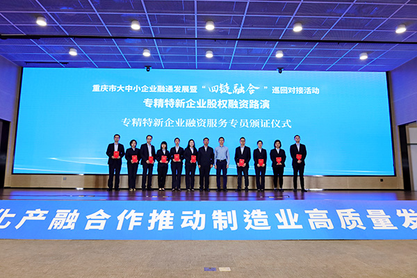 活動現(xiàn)場,重慶市經(jīng)濟(jì)信息委融資服務(wù)處作重慶市“33618”現(xiàn)代制造業(yè)集群體系發(fā)展推介,并對郵儲銀行璧山支行、銅梁支行兩家科技金融特色支行進(jìn)行授牌,向10名專精特新融資服務(wù)專員代表頒發(fā)了服務(wù)專員證書。