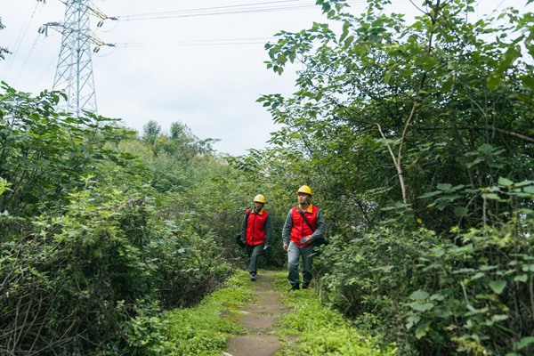 電力員工在茶店老街的青石板路上巡視220千伏茶郵線。國(guó)網(wǎng)重慶永川供電公司供圖