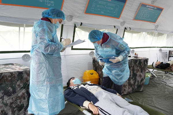 實戰(zhàn)演練人員被分為指揮組、外科組、中醫(yī)疫病組、心理干預組等10個編組,圍繞風險評估、中醫(yī)治療、后方轉(zhuǎn)運、心理干預等20余個科目進行演練。指揮部緊急開會統(tǒng)籌制定處置方案,各組根據(jù)接收傷員情況實施針對性救治。其中,中醫(yī)疫病組重點演練火熨術(shù)、平衡火罐等中醫(yī)藥治療方法,醫(yī)技組運用多種移動設備開展放射、血液、微生物等檢驗檢查,后勤組負責救援期間各項基礎(chǔ)物資管理和保障任務。