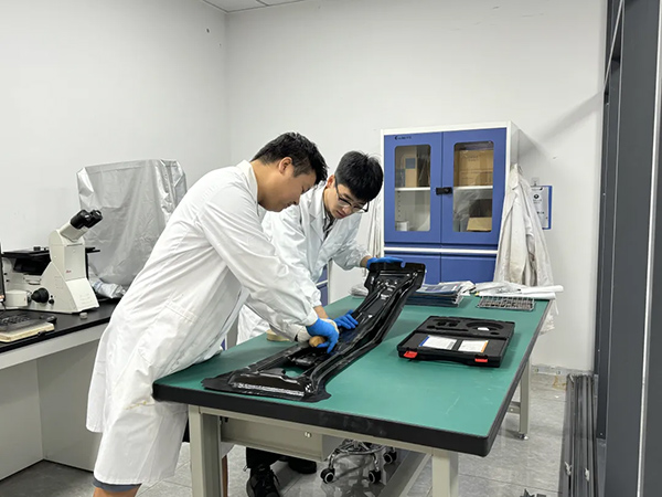 裝備輕量化技術(shù)研究所團(tuán)隊(duì)正在進(jìn)行附著力測試。兩江協(xié)同創(chuàng)新區(qū)供圖