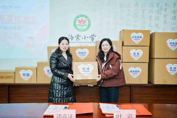 海棠小學校長褚彥鳳表示:“這些物資豐富了學生們的學習和生活。我們也將教導孩子們銘記這份愛心,努力學習,將來成為對社會有用的人,將這份愛心傳遞下去?!?/p>