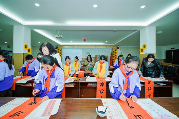海棠小學興隆校區(qū)于2003年開始創(chuàng)建書法特色學校,經(jīng)過20年的積淀,成為教育部辦公廳認定的第三批全國中小學中華優(yōu)秀傳統(tǒng)文化傳承學校,并于2011年被授予中國書法“蘭亭小學”稱號。本次活動結(jié)束后,學生代表還為重慶銀行員工代表及客戶代表獻上了自己的書法作品。
