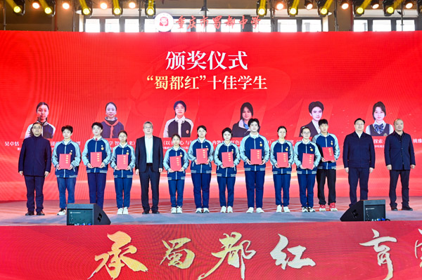 為引導(dǎo)鼓勵(lì)師生在傳承紅色基因、弘揚(yáng)革命精神方面的突出貢獻(xiàn),學(xué)校在校慶之際特別設(shè)立了“紅色傳承之星”——“蜀都紅”十佳學(xué)生、十佳教師和黨員示范班等獎(jiǎng)項(xiàng),與會領(lǐng)導(dǎo)為獲得榮譽(yù)的師生頒發(fā)榮譽(yù)證書。