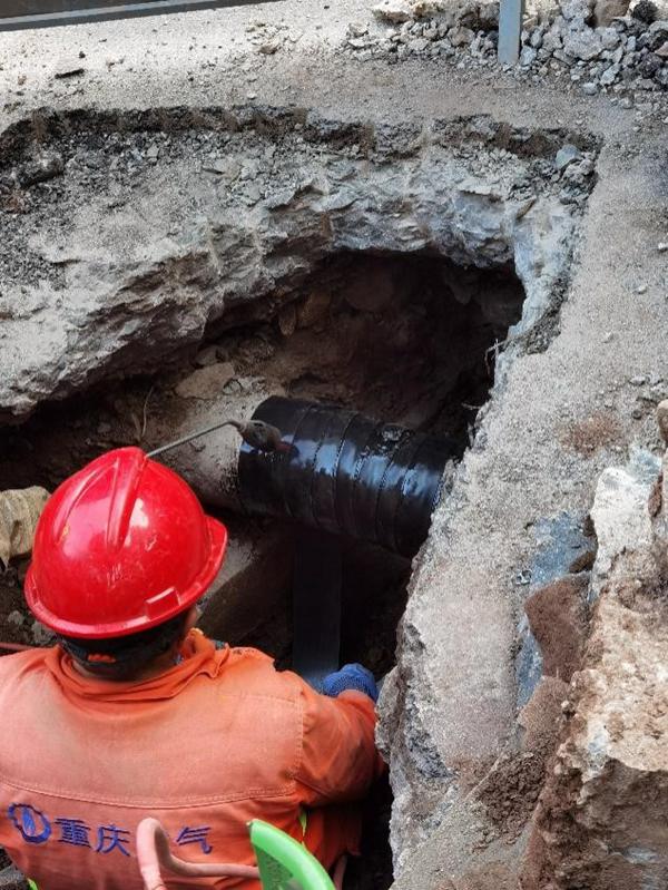 重慶燃?xì)廨斉浞止竟ぷ魅藛T正進(jìn)行建設(shè)線防腐層修復(fù)。重慶燃?xì)饧瘓F(tuán)供圖