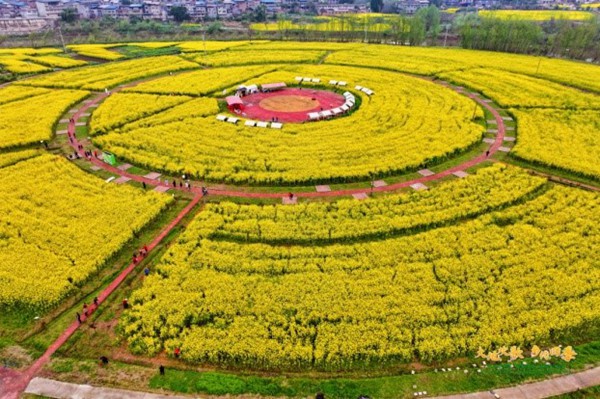 情景推介《菜花景區(qū)我來夸》為現場以及在線觀看直播的觀眾們帶來了一片花海。潼南油菜花正值盛花期,上萬畝金黃油菜花綻放。據悉,3月8日-9日兩天接待游客超16萬人次。