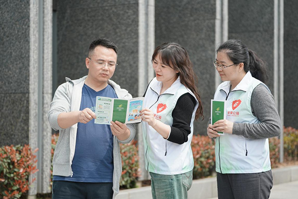 “阿姨,您好!我們正在開展‘郵愛公益’活動,只要您每天走5000步就能兌換公益金,幫助困難家庭學(xué)生完成學(xué)業(yè)。”活動現(xiàn)場,郵儲工作人員向沿途市民講解活動內(nèi)容。