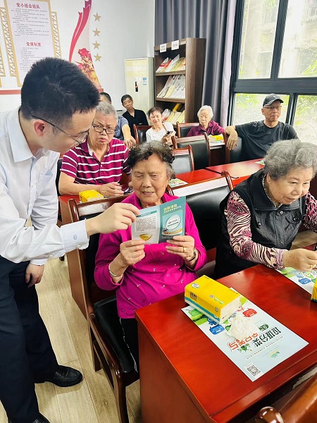 興業(yè)銀行重慶分行工作人員為社區(qū)居民答疑解惑。興業(yè)銀行重慶分行供圖