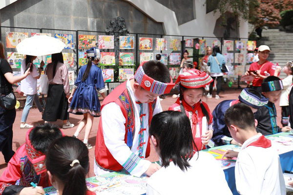 活動(dòng)現(xiàn)場(chǎng)有不同民族的學(xué)生、家長(zhǎng)與教師共同繪制民族團(tuán)結(jié)畫卷,用繽紛色彩展現(xiàn)各民族和諧共生的美好畫面,傳遞團(tuán)結(jié)一心的深厚情誼。
