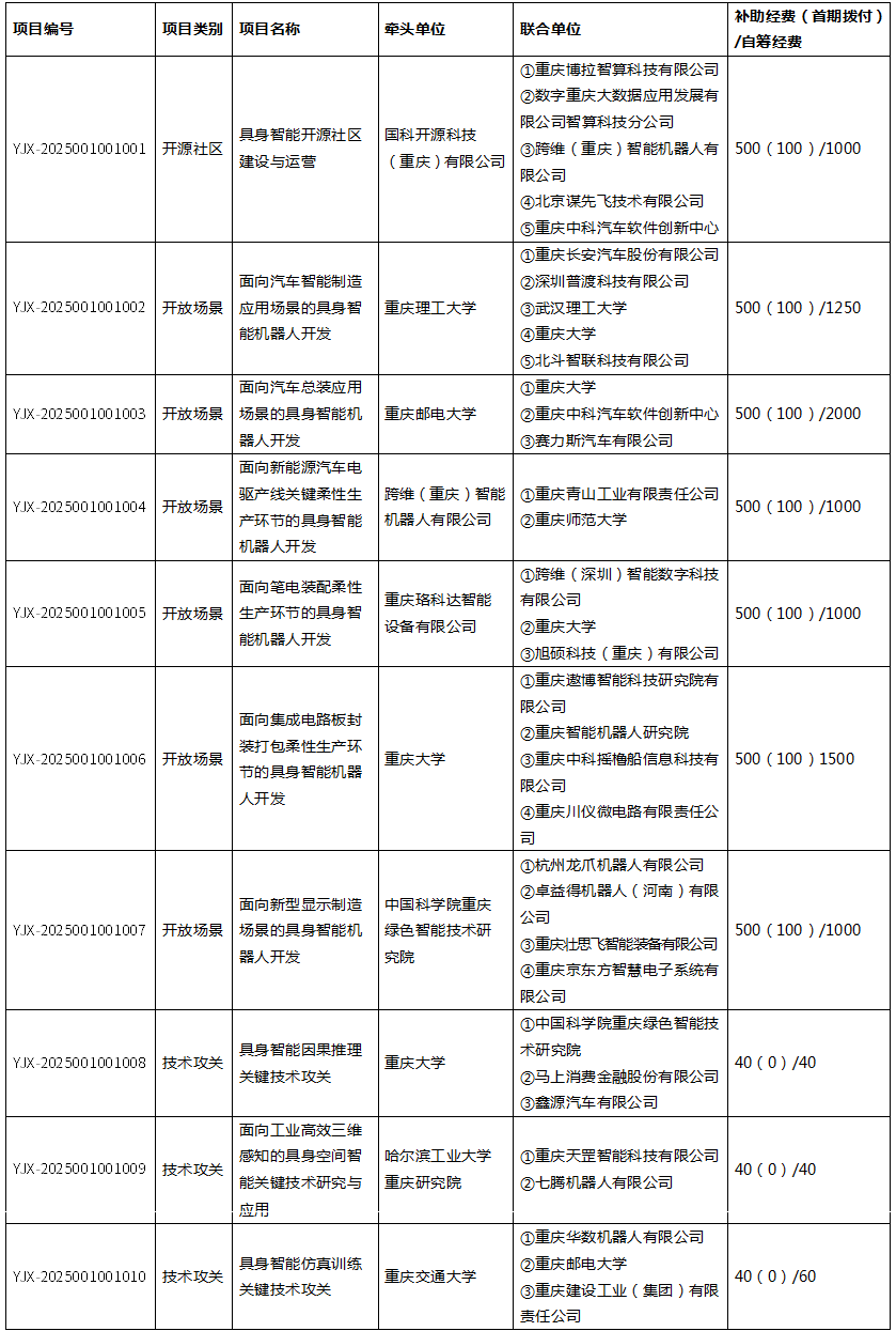 其中,哈爾濱工業(yè)大學(xué)重慶研究院作為牽頭單位揭榜“面向工業(yè)高效三維感知的具身空間智能關(guān)鍵技術(shù)”項(xiàng)目,重慶中科搖櫓船信息科技有限公司(下稱“中科搖櫓船”)、重慶博拉智算科技有限公司(下稱“博拉智算”)作為聯(lián)合單位分別參與揭榜“面向集成電路板封裝打包柔性生產(chǎn)環(huán)節(jié)的具身智能機(jī)器人開發(fā)”和“具身智能開源社區(qū)建設(shè)與運(yùn)營(yíng)”項(xiàng)目。