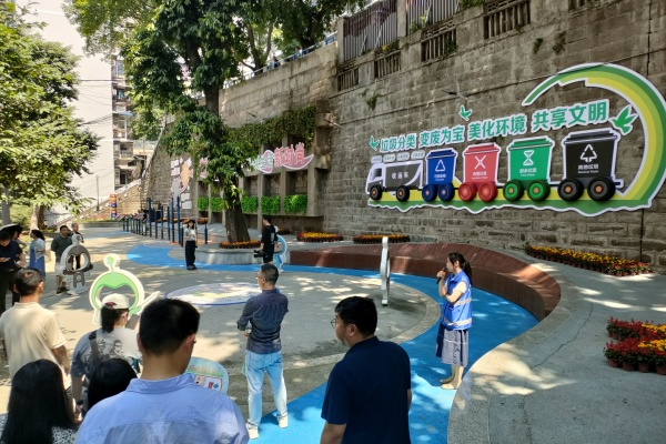 在實地觀摩中,華一坡垃圾分類宣教主題游園吸引了大家的關(guān)注。該公園集知識展示、游戲互動和創(chuàng)意工坊等功能于一體,通過開展“垃圾分類·與您童行”專項整治系列活動、校園趣味游園等實踐活動,以及“垃圾分類-小手拉大手”等主題宣傳活動,帶動1.3萬戶家庭參與。