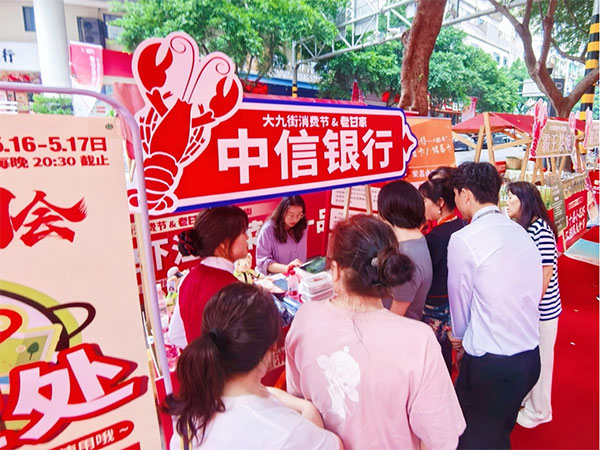 不久前,在2025大美江北·觀音橋大九街“消費節(jié)&老甘家第十屆小龍蝦江湖菜美食節(jié)”上,中信銀行重慶北城天街支行工作人員熱情洋溢地吆喝著。