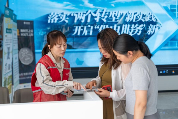 在雙橋營(yíng)業(yè)廳,“耀紅巖”品牌服務(wù)隊(duì)隊(duì)員解答市民用電疑惑。國(guó)網(wǎng)重慶永川供電公司供圖