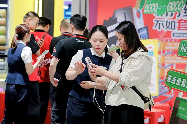 重慶農(nóng)商行“金融特派員”指導(dǎo)客戶參與“國補(bǔ)煥新 提振消費(fèi)”活動現(xiàn)場。重慶農(nóng)商行供圖