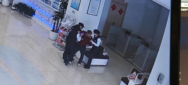 長(zhǎng)壽支行“張富清金融服務(wù)隊(duì)”全力救助患病老年客戶(hù),最終化險(xiǎn)為夷(監(jiān)控視頻)。建行重慶市分行供圖