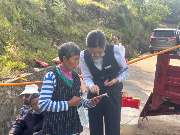 巫山支行“張富清金融服務(wù)隊(duì)”登上海拔1000余米的茶山,為茶農(nóng)上門(mén)辦卡。建行重慶市分行供圖