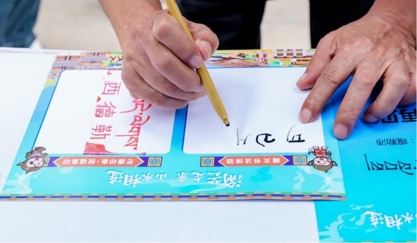 市集互動區(qū)市民體驗(yàn)藏文書法。主辦方供圖