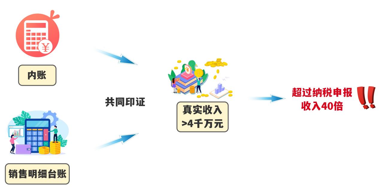為弄清事實真相,檢查人員依法檢查公司財務(wù)人員電腦,發(fā)現(xiàn)有內(nèi)外兩套電子賬簿:外賬記錄的收入與申報數(shù)據(jù)相同,而內(nèi)賬記錄的經(jīng)營情況與舉報線索提及的規(guī)模特征基本一致。同時,倉庫管理人員電腦里的銷售明細(xì)臺賬詳細(xì)記錄了超4千萬元的貨品銷售數(shù)據(jù),超過納稅申報收入的40倍,與內(nèi)賬高度吻合。