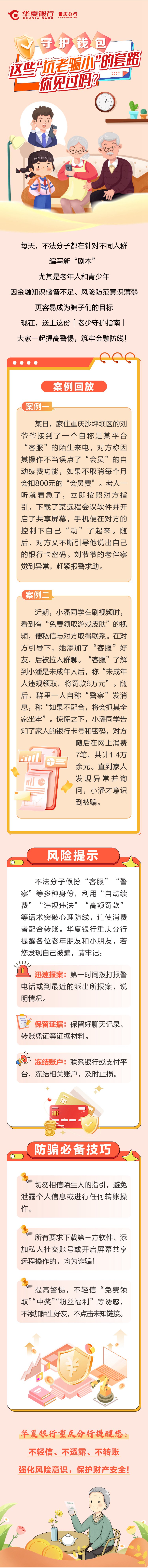 華夏銀行重慶分行發(fā)布“老少守護(hù)指南” 揭示“坑老騙小”套路