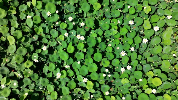 風(fēng)過荷塘,綠浪翻涌。雅美佳濕地內(nèi),國慶紅似火焰灼水,太空紅旗如絳紗垂波,而最早叩響夏日的“綠菊”正綻放清韻——淡豆綠色花瓣裹著乳白花心,像被晨露浸染的玉盞,與粉紫睡蓮、水生花卉等共織五彩濕地錦緞。作為大足太空荷花的“報(bào)夏使者”,綠菊憑借其早花特性,成為當(dāng)?shù)貧v時(shí)多年選育的“初夏名片”。