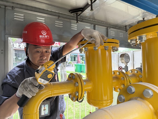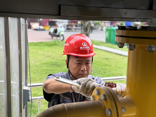燃?xì)饩S修人員石磊在檢查調(diào)壓設(shè)備。重慶燃?xì)饧瘓F供圖