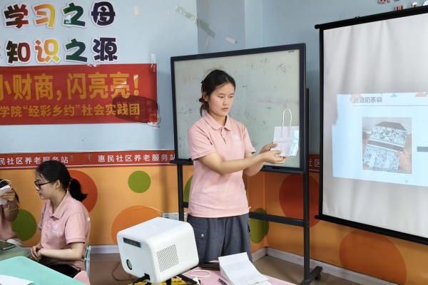 隨后的互動(dòng)問答環(huán)節(jié)氣氛熱烈。實(shí)踐團(tuán)巧妙地將基礎(chǔ)財(cái)商知識(shí)與生活常識(shí)融合,設(shè)計(jì)成趣味問題?!板X從哪里來?”“怎樣合理使用零花錢?”孩子們踴躍搶答,答對者獲得虛擬代金券和文具禮包獎(jiǎng)勵(lì),在寓教于樂中,貨幣的功能、價(jià)值與理性消費(fèi)的理念悄然扎根。