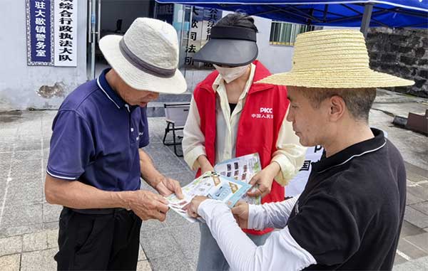 人保財(cái)險(xiǎn)永川支公司依托何埂鎮(zhèn)車駕管服務(wù)站,面向鄉(xiāng)村群眾開展保險(xiǎn)金融教育宣傳。工作人員為老年人量身準(zhǔn)備了大字版的風(fēng)險(xiǎn)提示單、反詐宣傳手冊等材料,方便老年人清晰閱讀、準(zhǔn)確理解,讓金融安全意識深入鄉(xiāng)村、惠及老人。