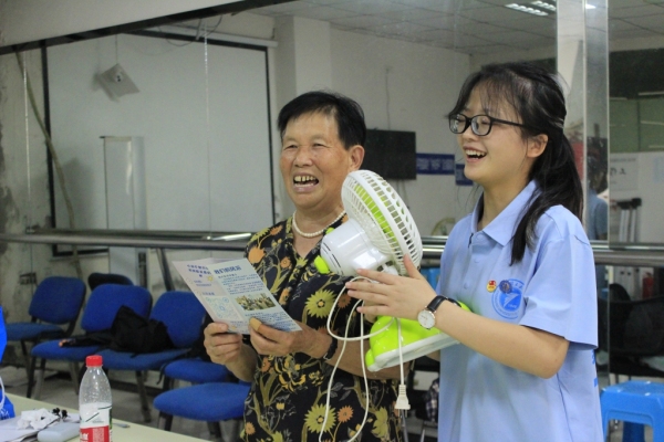志愿者將修好的風(fēng)扇送還給老奶奶。重慶理工大學(xué)供圖