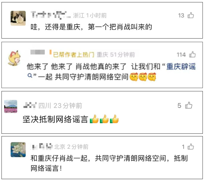 讓我們和重慶崽兒肖戰(zhàn)一起響應“重慶辟謠”號召:在網(wǎng)絡上發(fā)布信息,要真實、客觀、準確,不造謠、不信謠、不傳謠,共同營造清朗網(wǎng)絡空間!