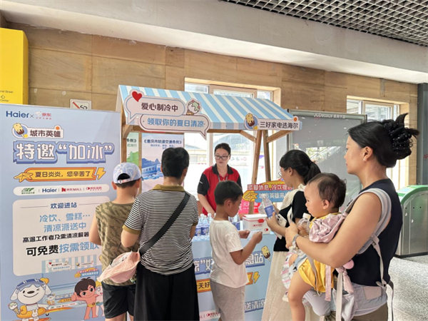 在京東電器入渝6周年之際,企業(yè)攜手重慶軌道運營公司、京東買藥、海爾等單位,發(fā)起“城市冰島計劃”大型公益活動,為高溫作業(yè)人員提供便捷的納涼補給服務。