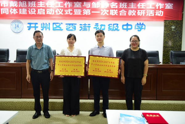 為深化重慶市市級(jí)班主任工作室間的協(xié)同聯(lián)動(dòng),搭建集學(xué)習(xí)、研討、成長于一體的班主任專業(yè)發(fā)展平臺(tái),8月21日,重慶市戴旭班主任工作室與鄒靜名班主任工作室在重慶市開州區(qū)西街初級(jí)中學(xué)資源中心舉行了“班主任工作室共同體”建設(shè)啟動(dòng)儀式暨首次聯(lián)合教研活動(dòng)。