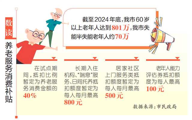 惠及我市70萬失能半失能老年人,每月最高補(bǔ)貼800元