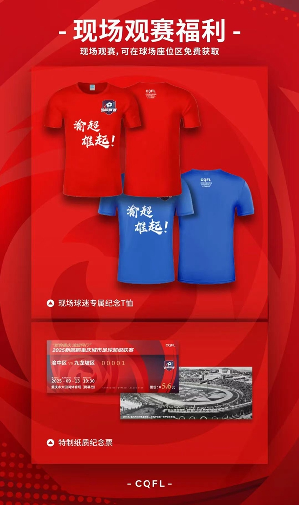 另據(jù)了解,組委會也將為9月13日到場觀賽的球迷朋友們準備專屬福利,包括紀念T恤與特制紀念票。觀賽的球迷朋友還能現(xiàn)場體驗美食、非遺集市等。